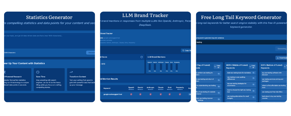 1,000+ keyword questions, clustering, DeepSeek KW tool, Trending Topics, Stat Generator, LLM brand tracking, CSV export, title tools, 24+ AI SEO tools 1564_e3c7be-ff58> |