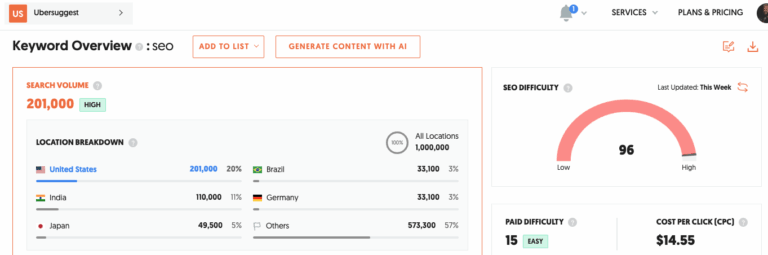 - Ubersuggest (starting at $29/month) offers a user-friendly interface with a free basic version